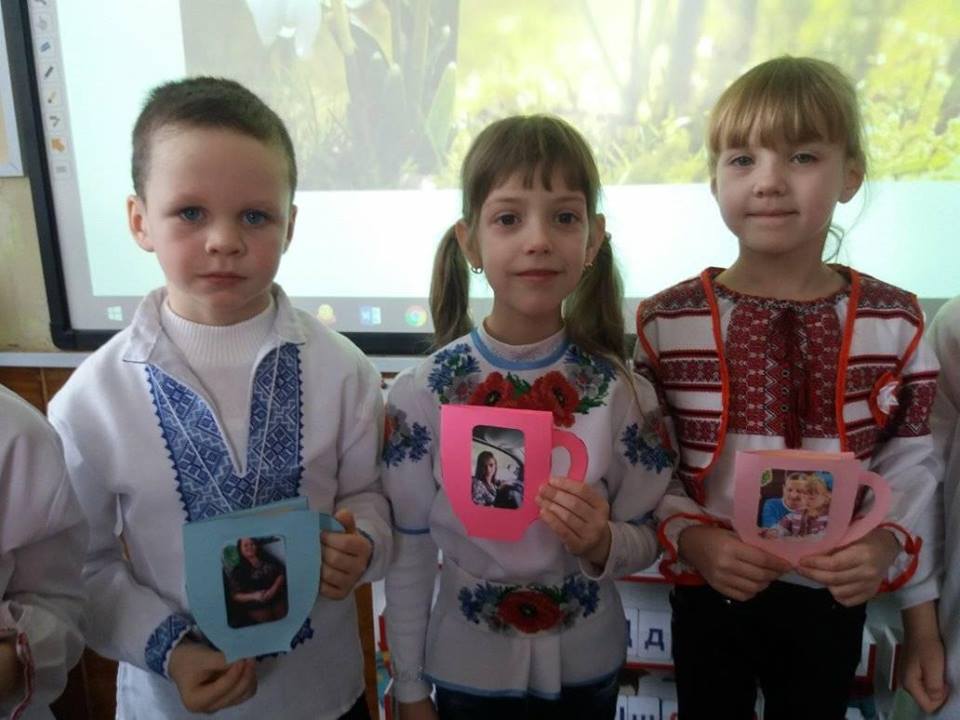 У переддень весняного свята учні 1 класу виготовили для матусь вітальні листівки "Чашка".