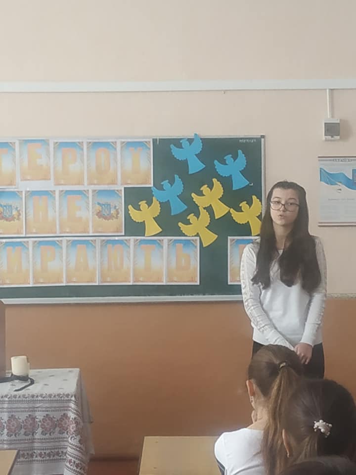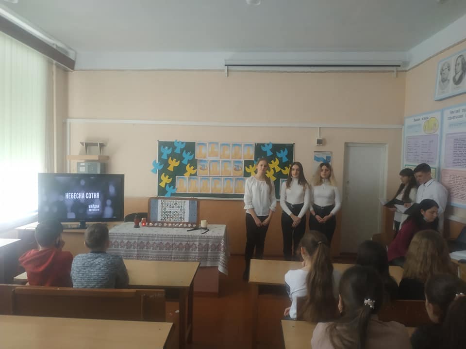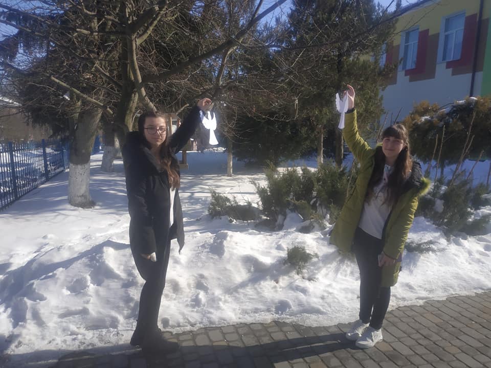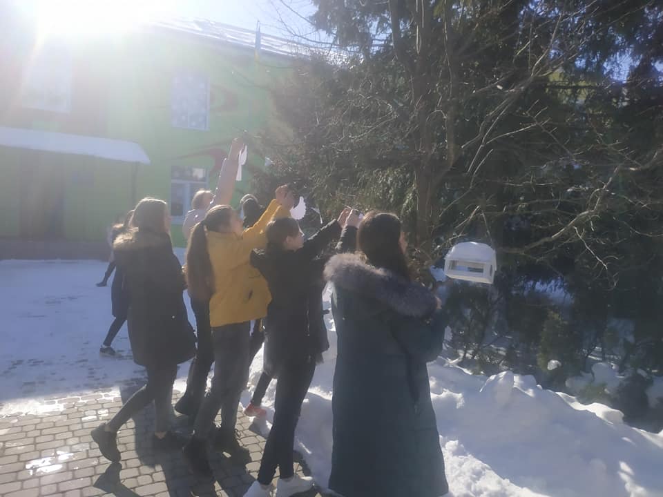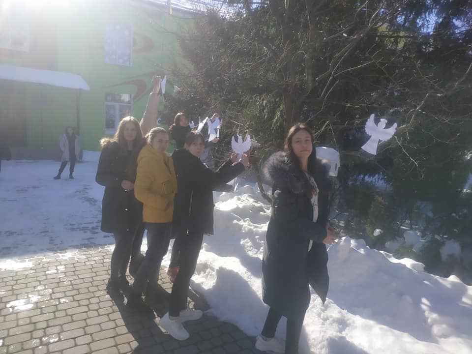Також учні приєдналися до акції "Ангели пам'яті". Діти виготовили паперових ангелів, які символізують душі померлих Героїв Революції Гідності та прикрасили ними дерева на подвір'ї своєї школи.